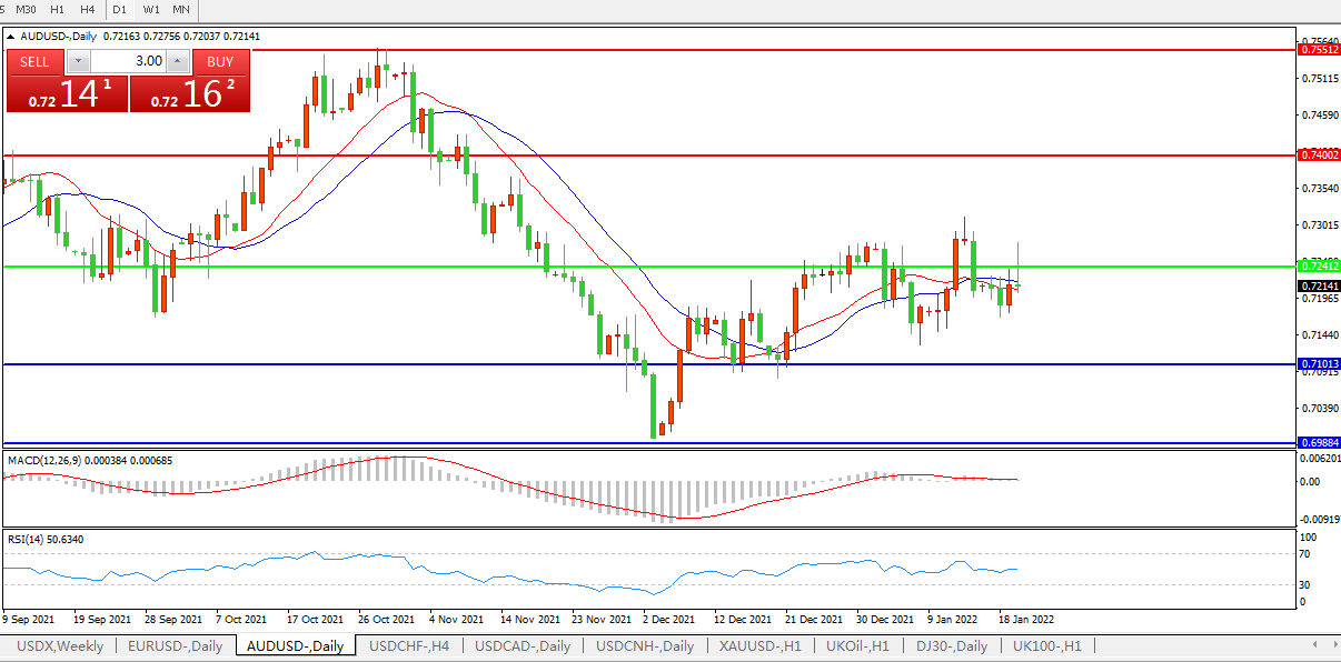 备选策略:0.7240上方看涨,目标0.7400、0.7550