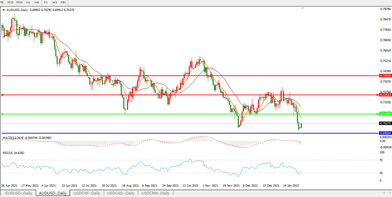 备选策略:0.7100上方看涨,目标0.7250、0.7400