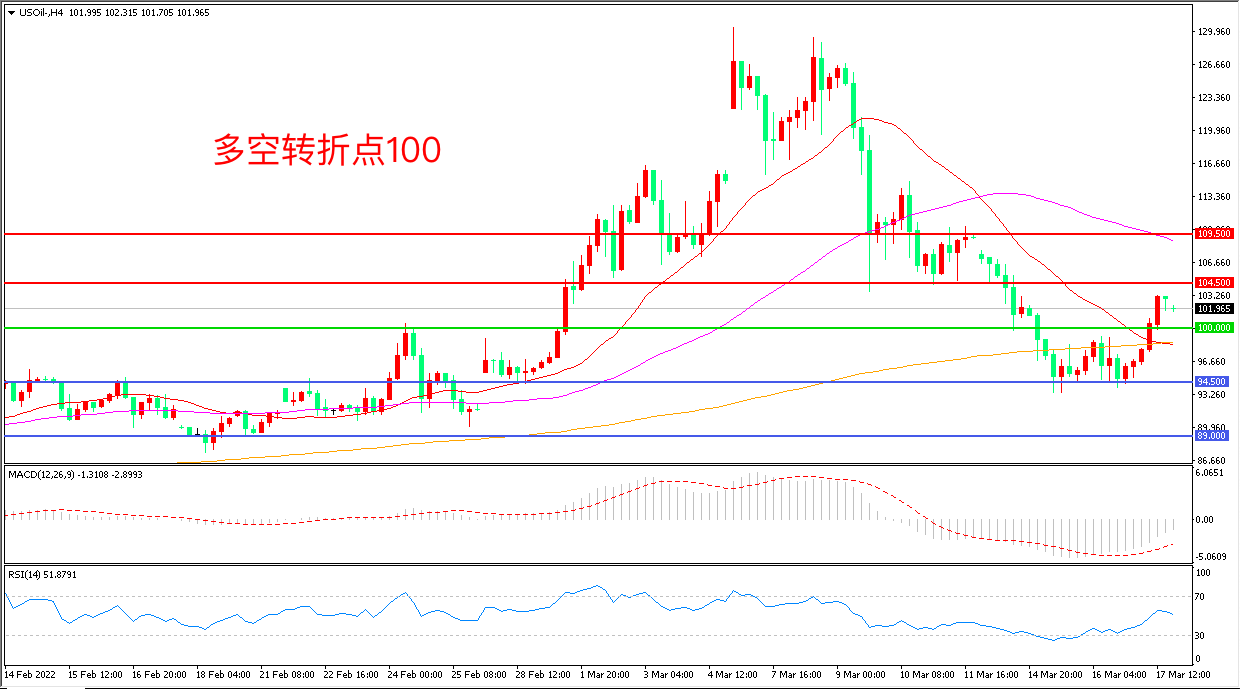 交易策略:在100.00之上看涨,目标104.50 109.50