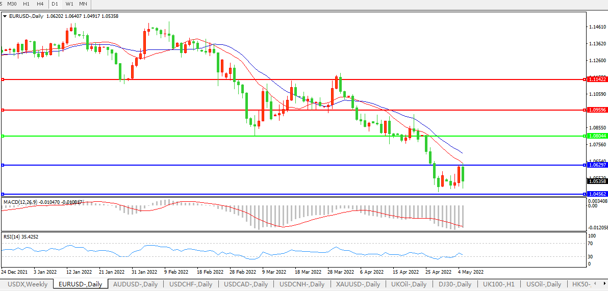 技术面简析:日图均线空头排列,汇价反弹后再度向下行,MACD运行于0轴下方且量能0轴下持续放量,RSI小幅走强,预计短期汇价大概率将在反弹后进一步下行。