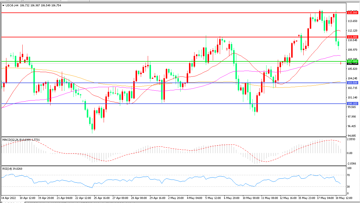 周三(5月18日),以美股为代表的风险资产全面下跌,大宗商品遭遇“寒潮”, 美国WTI原油大幅下挫,收报106.71美元/桶。随着美联储逐步收紧流动性,推动美元创近二十年年新高,宏观层面带来的压力不断加大,此前油价因需求前景改善和供应担忧加剧而大幅反弹,超买格局下,调整或将快速到来。