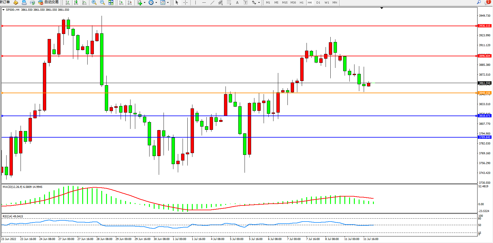 标普500指数7月11日(周一)收盘下跌45.43点,跌幅1.17%,报3853.95点;美联储的鹰派立场和避险情绪提振美元的同时,固定收益投资者更关注经济衰退风险。