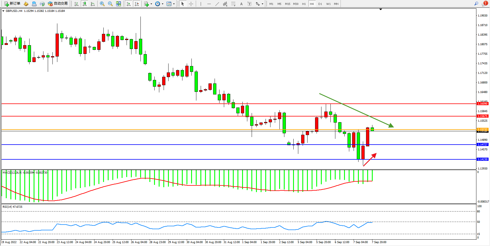 交易策略:1.15232下方看跌,目标1.14727、1.14230