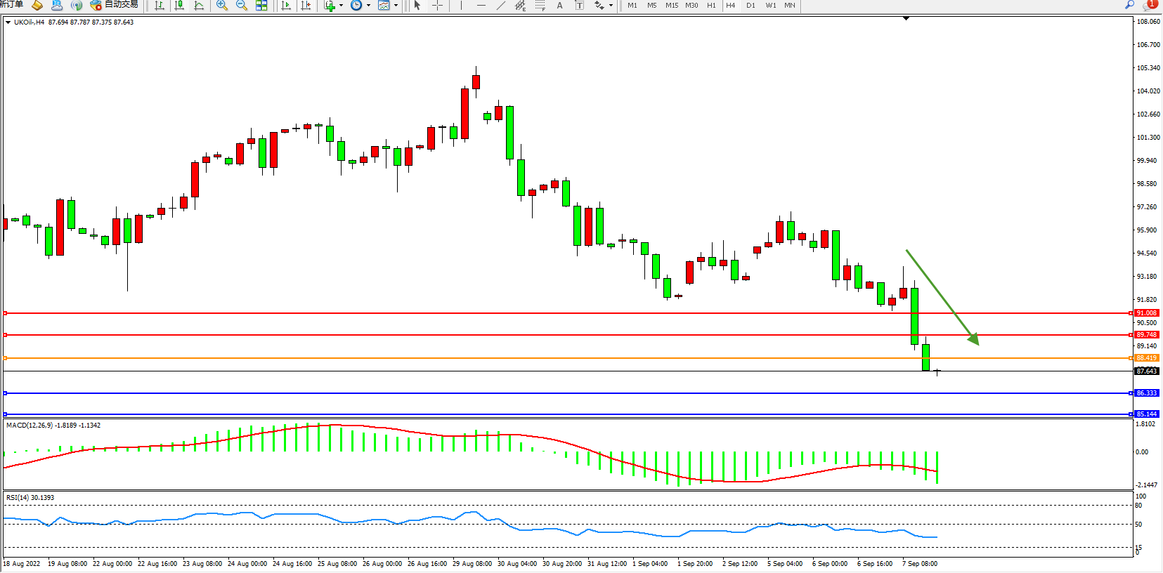 布油维持87.643附近震荡,美元飙升以及全球需求担忧令油价承压,尽管俄罗斯供应中断的威胁仍存。随着各国央行上调利率以抑制通胀,投资者担心经济可能会陷入衰退。