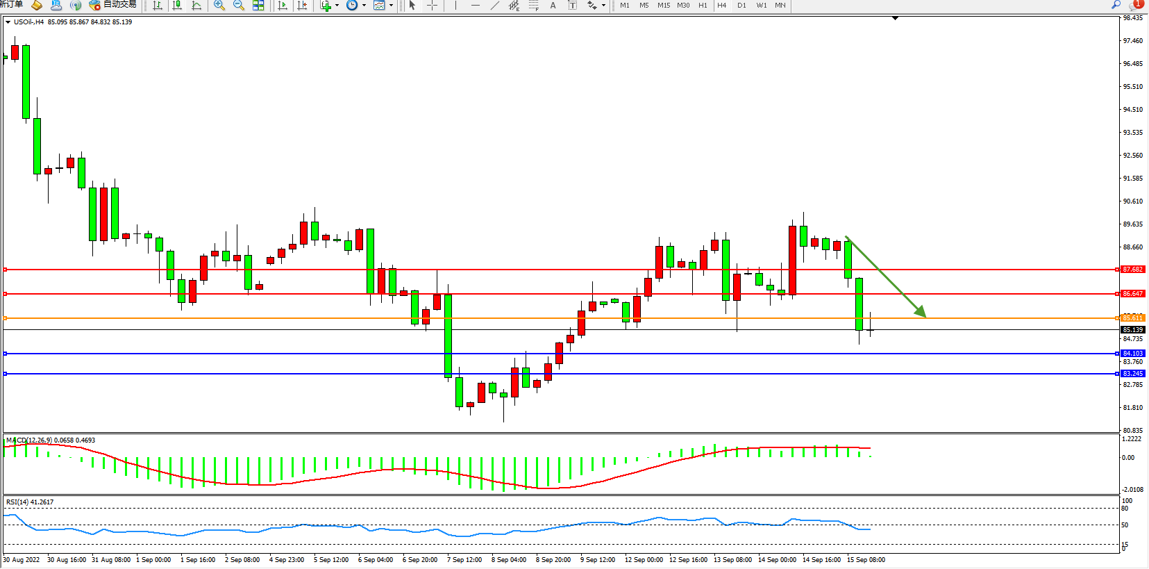 原油USOil——4小时K线图显示: