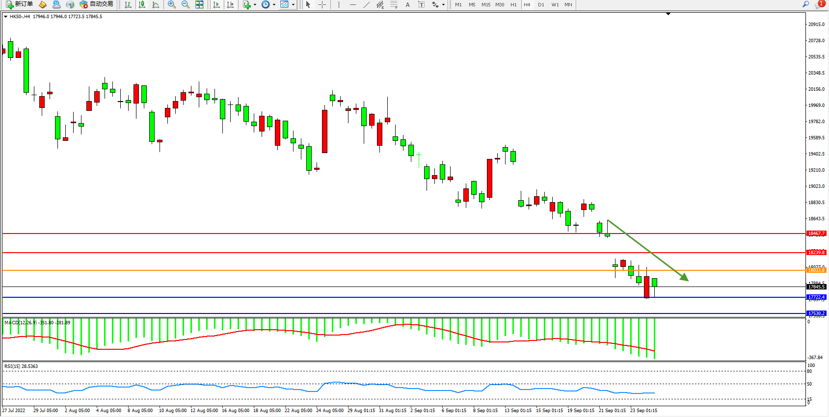 香港恒生指数9月26日(周一)收盘下跌78.13点,跌幅0.44%,报17855.14点;连续下跌的港股指数多数止跌反弹,恒指早盘冲高最终,国指涨0.38%,恒生科技指数涨1.61%,早盘一度涨超3%,三大指数盘中再度刷新调整低价。大型科技股反弹助力大市回升,汇丰、渣打等香港本地银行股走低。