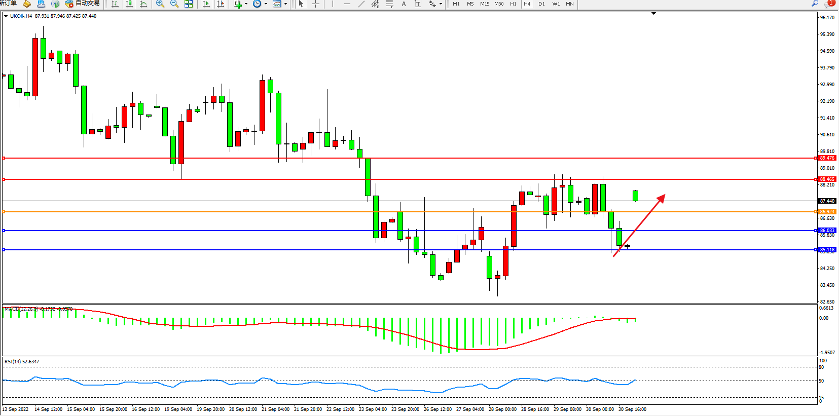 布油UKOil——4小时K线图显示: