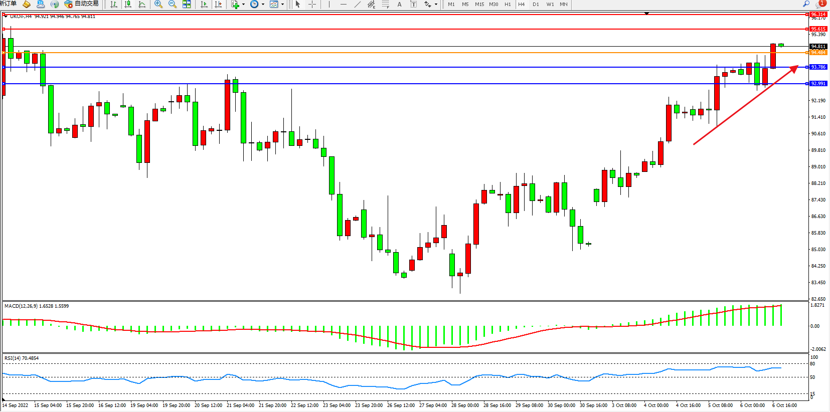 布油UKOil——4小时K线图显示: