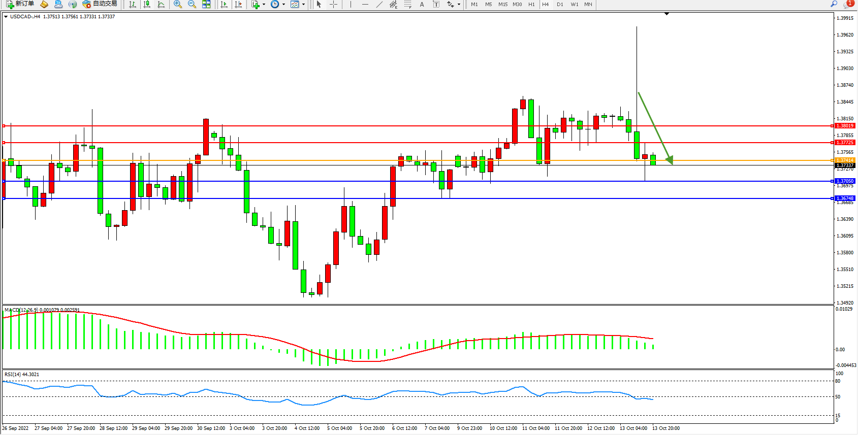 美元加元USDCAD——4小时K线图显示: