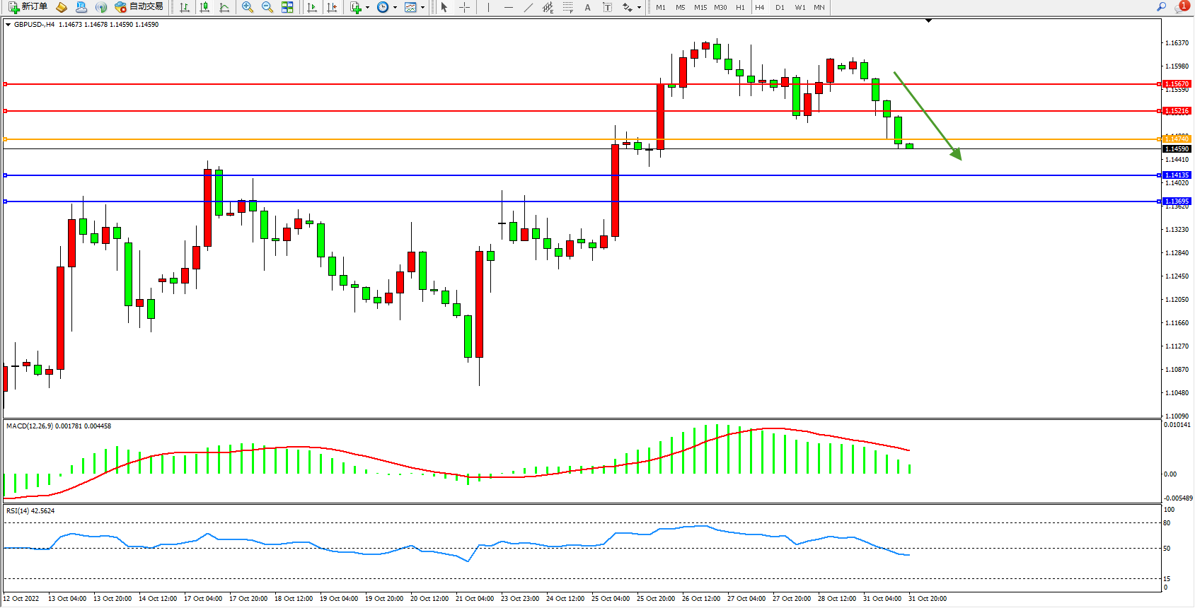 英镑兑美元维持1.14590附近震荡,由于高企的通胀,英国央行短期内应该会继续加息,但可能从2023年初开始暂停加息。机构预测英国经济将在2023年陷入衰退,英镑因此承压。