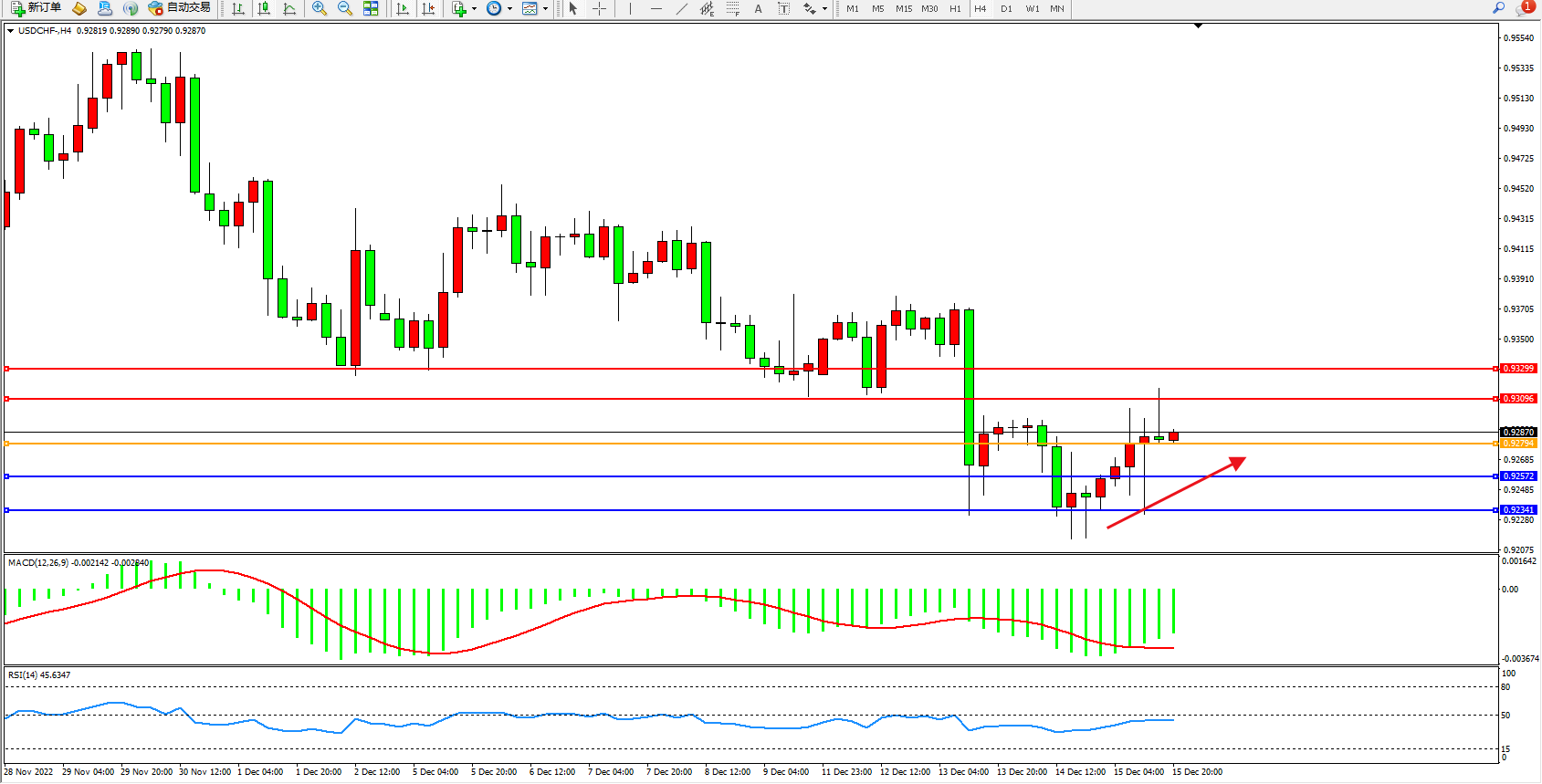 美元兑瑞郎维持0.92870附近震荡,瑞士央行将利率上调50个基点至1.0%,并可能在3月份再次加息50个基点至1.5%的峰值。为了抑制通胀,瑞士央行可能会干预外汇市场,防止瑞郎贬值。
