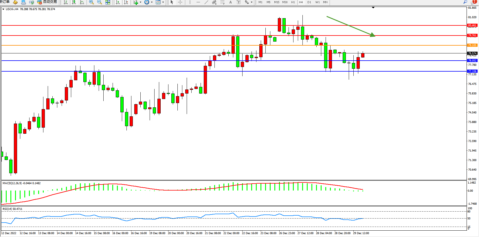 原油维持78.574附近震荡,俄罗斯总统普京决定从2月1日起的五个月内禁止向遵守西方价格上限的国家出口原油和石油产品,这给市场带来了一些支撑。但德国表示,该禁令“没有实际意义”,因为该国自春季以来一直致力于替代俄罗斯石油并确保供应安全。