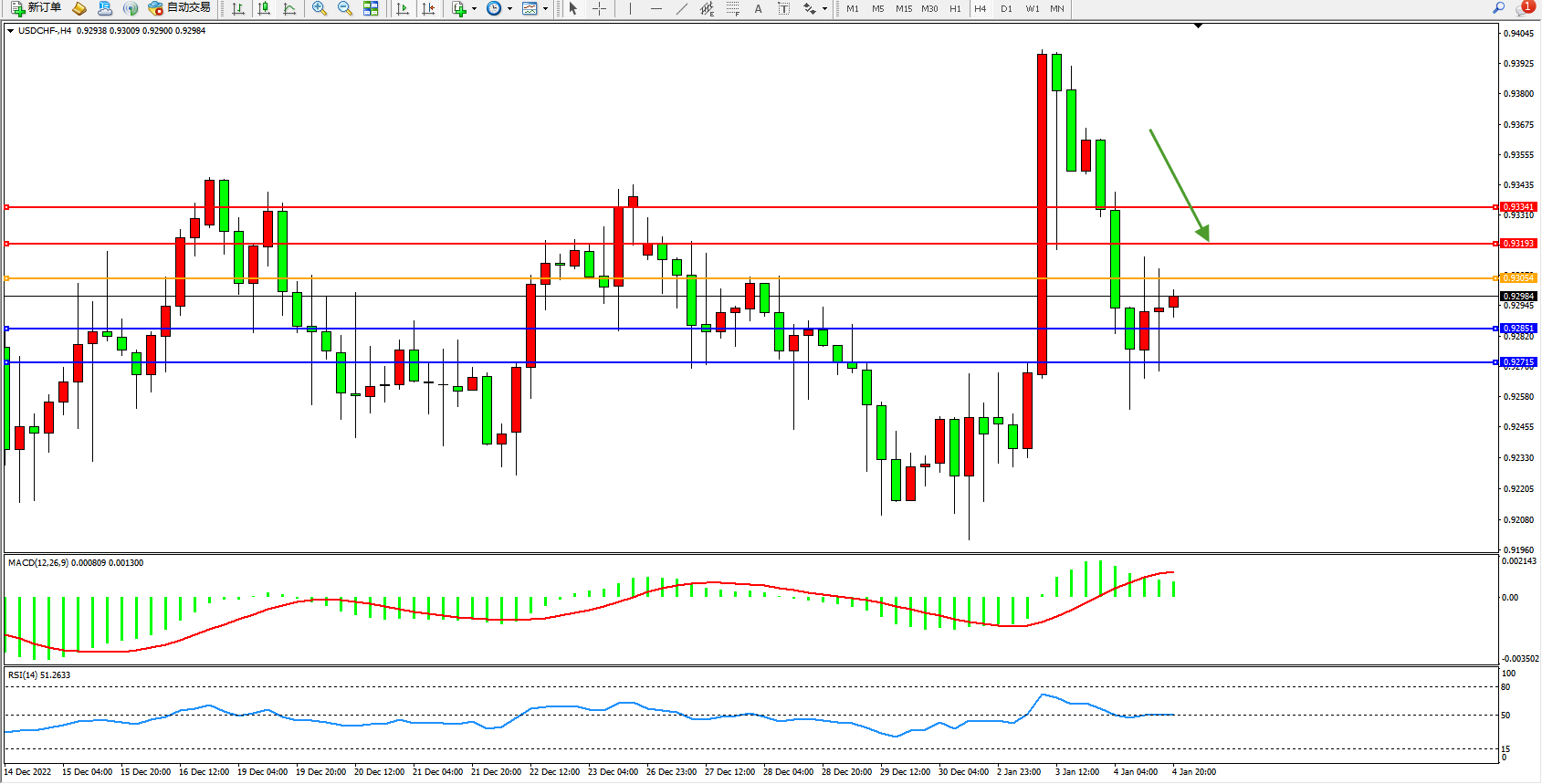 交易策略:0.93054下方看跌,目标0.92851、0.92715