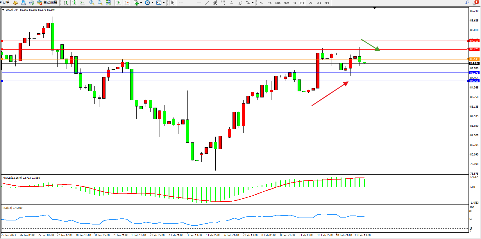 布油UKOil——4小时K线图显示:
