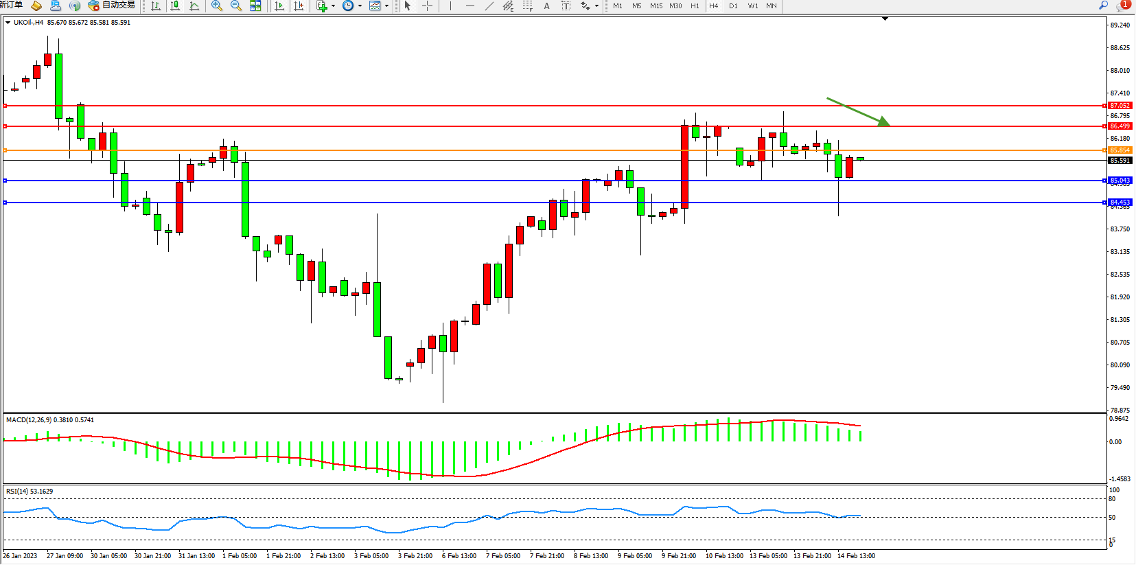 布油UKOil——4小时K线图显示: