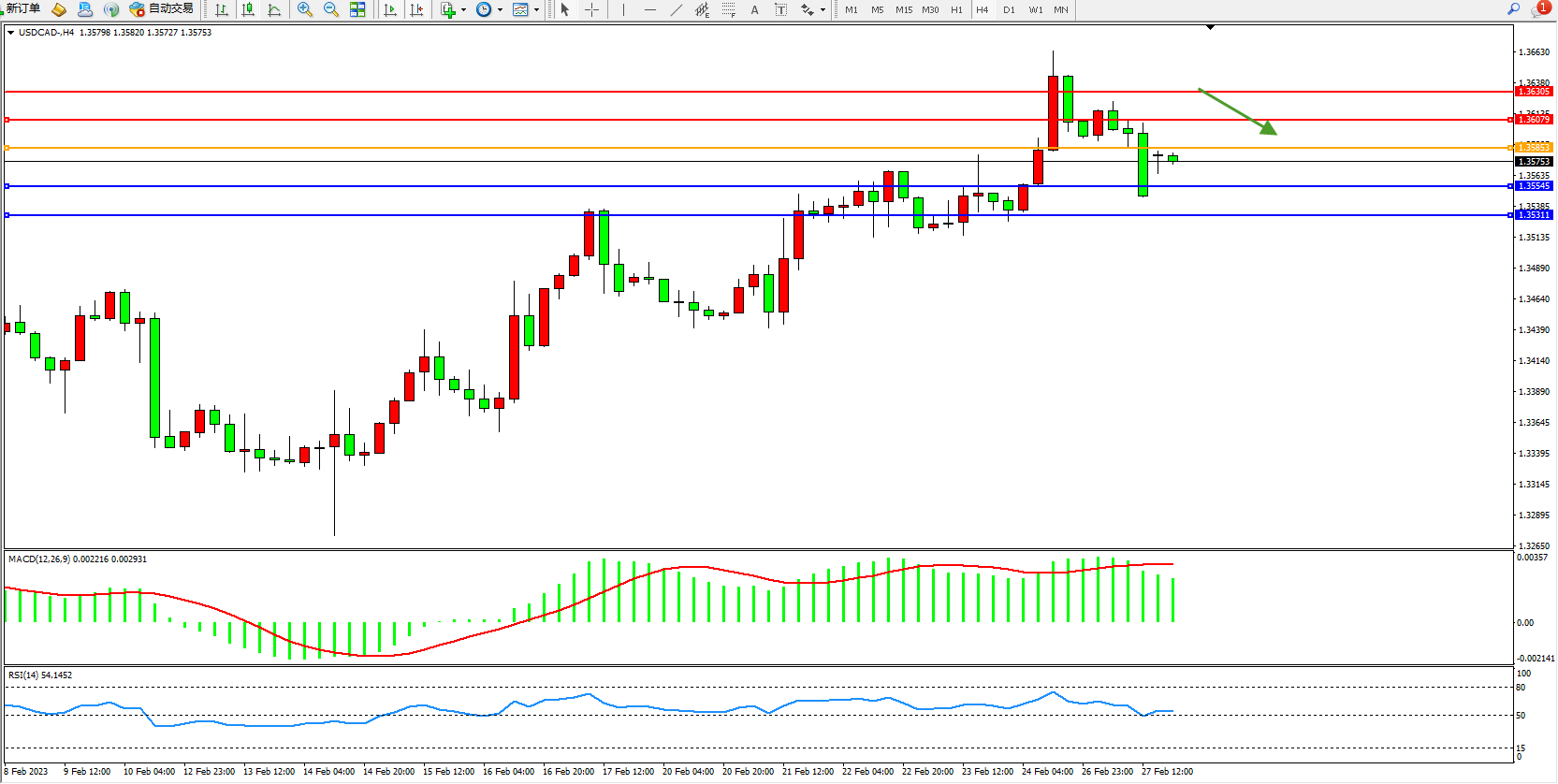 交易策略:1.35853下方看跌,目标1.35545、1.35311