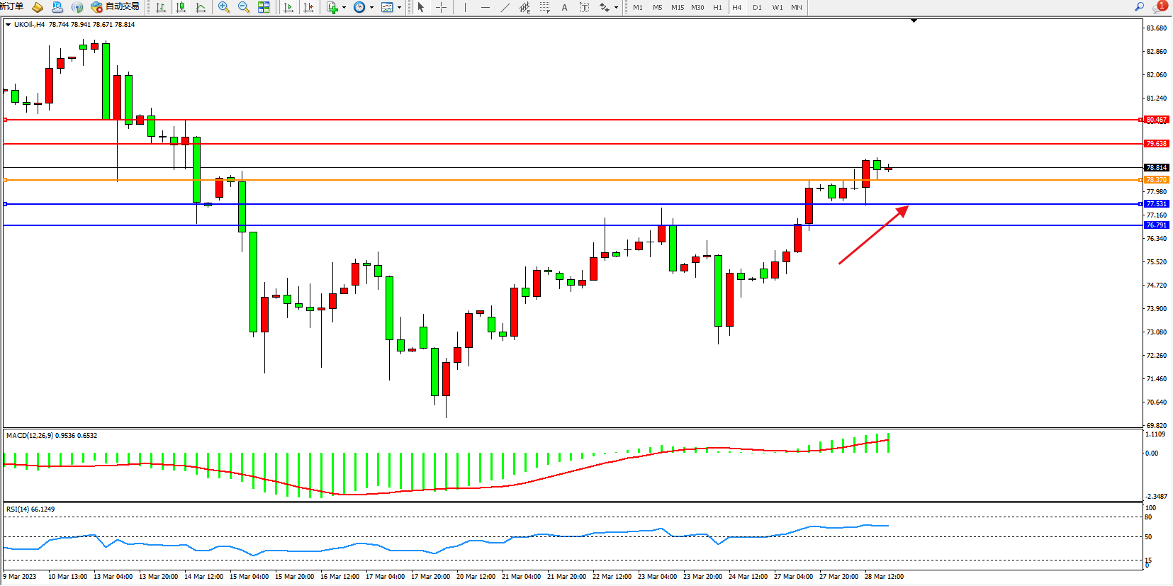 布油UKOil——4小时K线图显示: