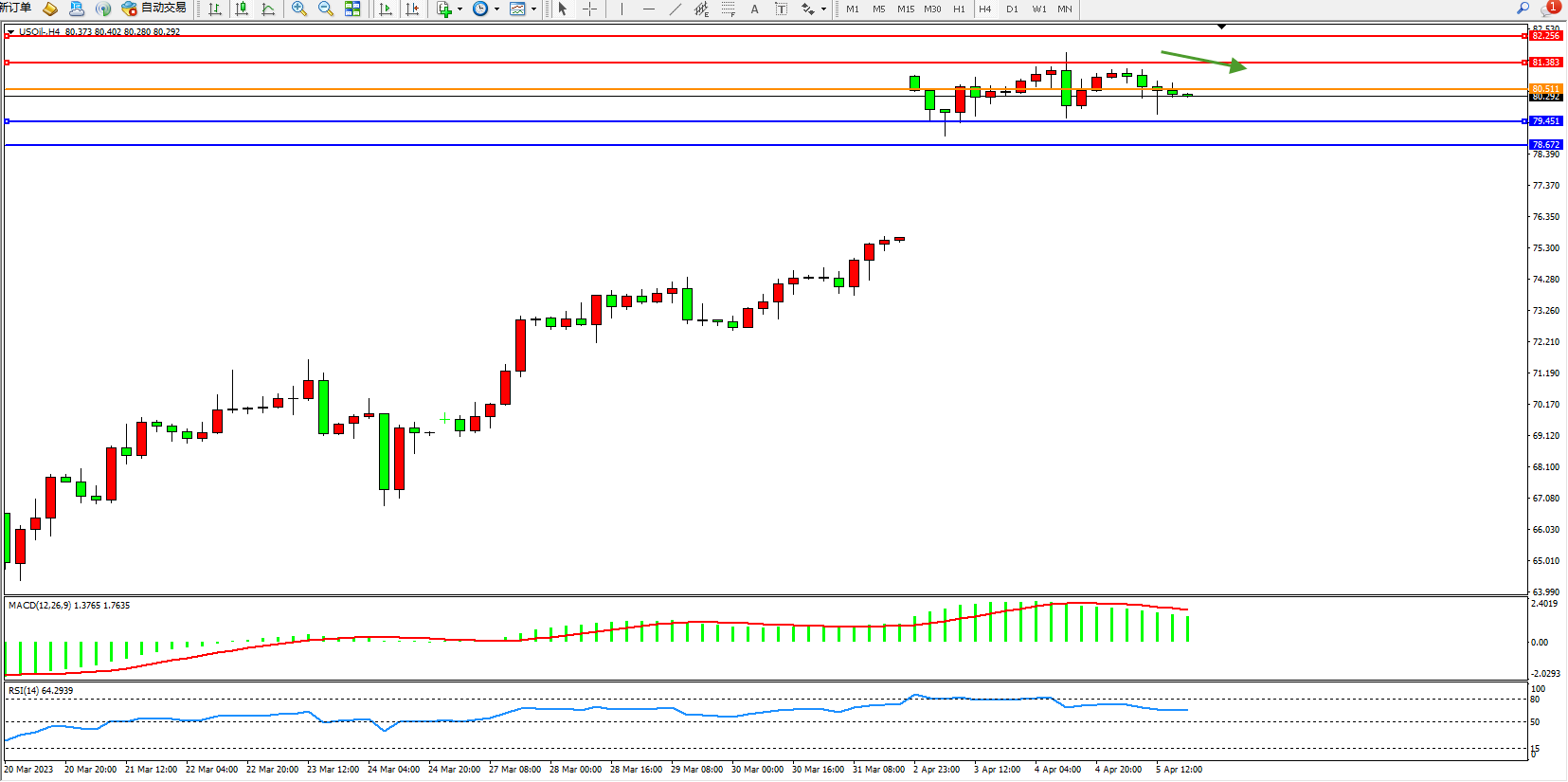 4小时图看:高位弱势整理,市场整体处于高位弱势徘徊,短期未能有进一步突破,MACD指标处于多头区域高位整理,RSI指标处于多头区域维持徘徊;