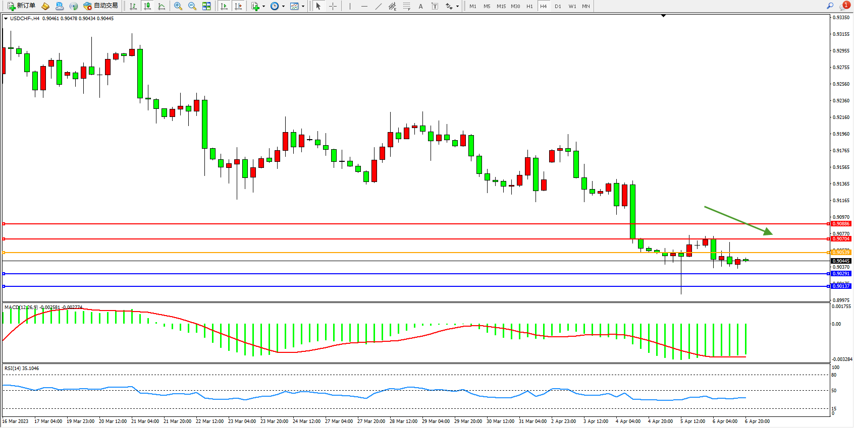 交易策略:0.90539下方看跌,目标0.90291 0.90137