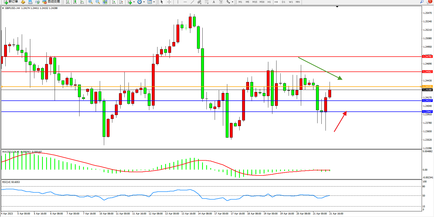 备选策略:1.24335上方看涨,目标1.24562 1.24795