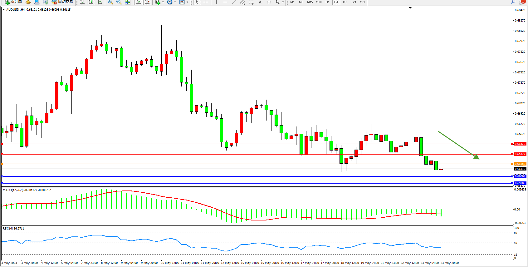 澳元兑美元维持0.66115附近震荡,市场对美联邦债务上限问题的态度,由此前的乐观转向了谨慎。澳元这些风险货币,目前的走势也是颇显窄幅。