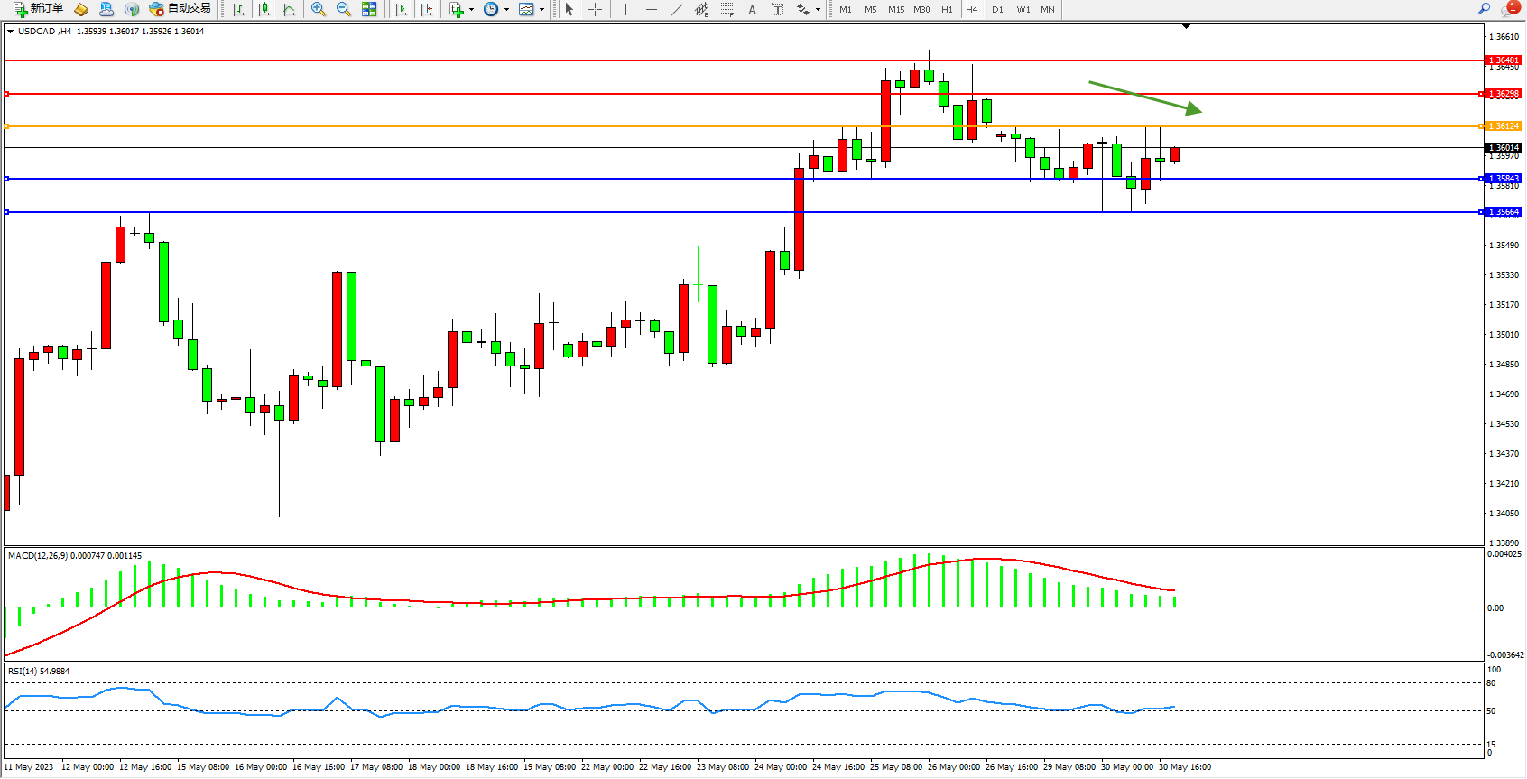 美元兑加元维持1.36014附近震荡,市场对美国债务上限协议可行性的担忧压制了市场风险偏好,而主要产油国在本周末举行会议之前发出的喜忧参半的信息给供应前景蒙上了阴影。