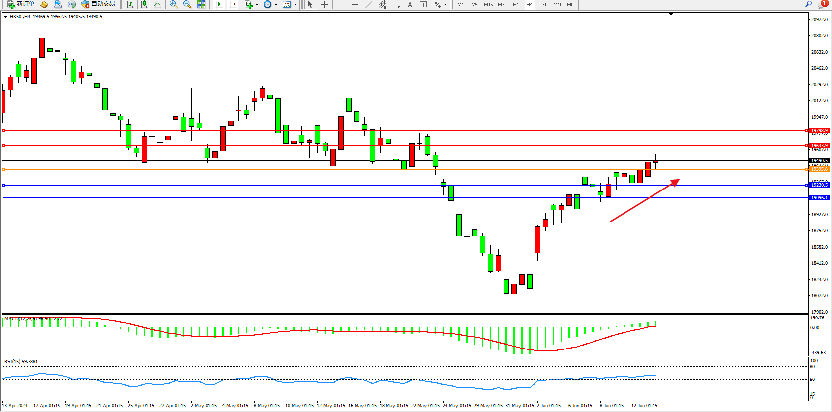 香港恒生指数6月13日(周二)收盘上涨117.11点,涨幅0.6%,报19521.42点;央行降息发力稳增长,此次降息符合市场预期。港股午后涨幅小幅加大,恒生科技指数一度涨至3%,最终收涨2.37%,恒指、国指分别上涨0.6%和0.5%,三者均创反弹新高。大型科技股强势带动大市上行,百度劲升近5%,小米、网易涨约3%,香港特区行政长官李家超13日表示,亚太经合组织(APEC)主办方有其规则和处事习惯,主办方有责任邀请经合组织的成员出席。南下资金全日净流入45亿港元,大市成交额为997亿港元。