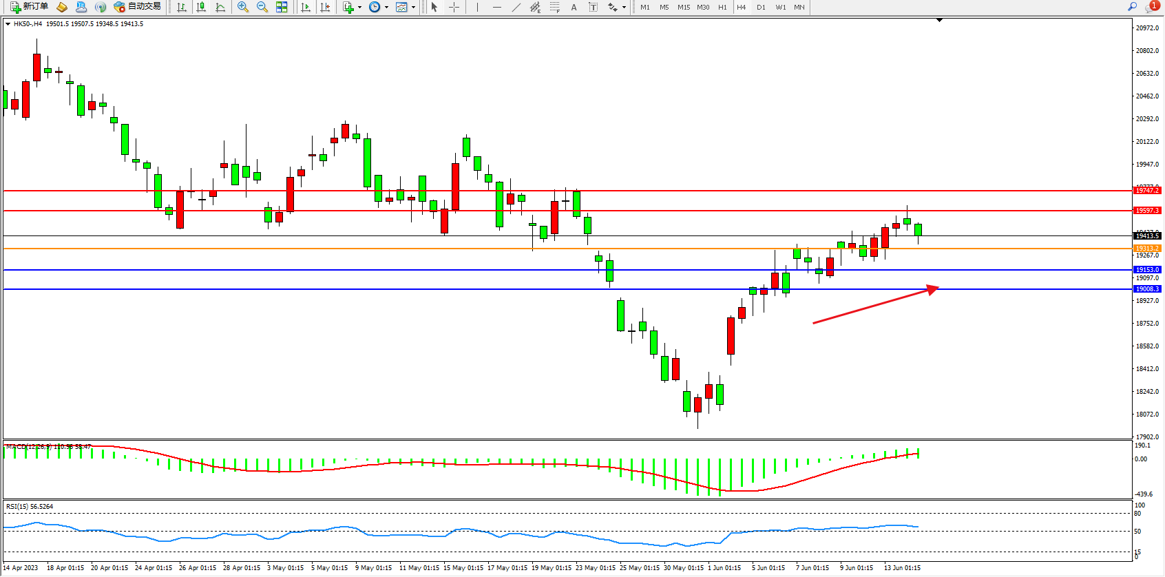 恒指HK50 4小时图