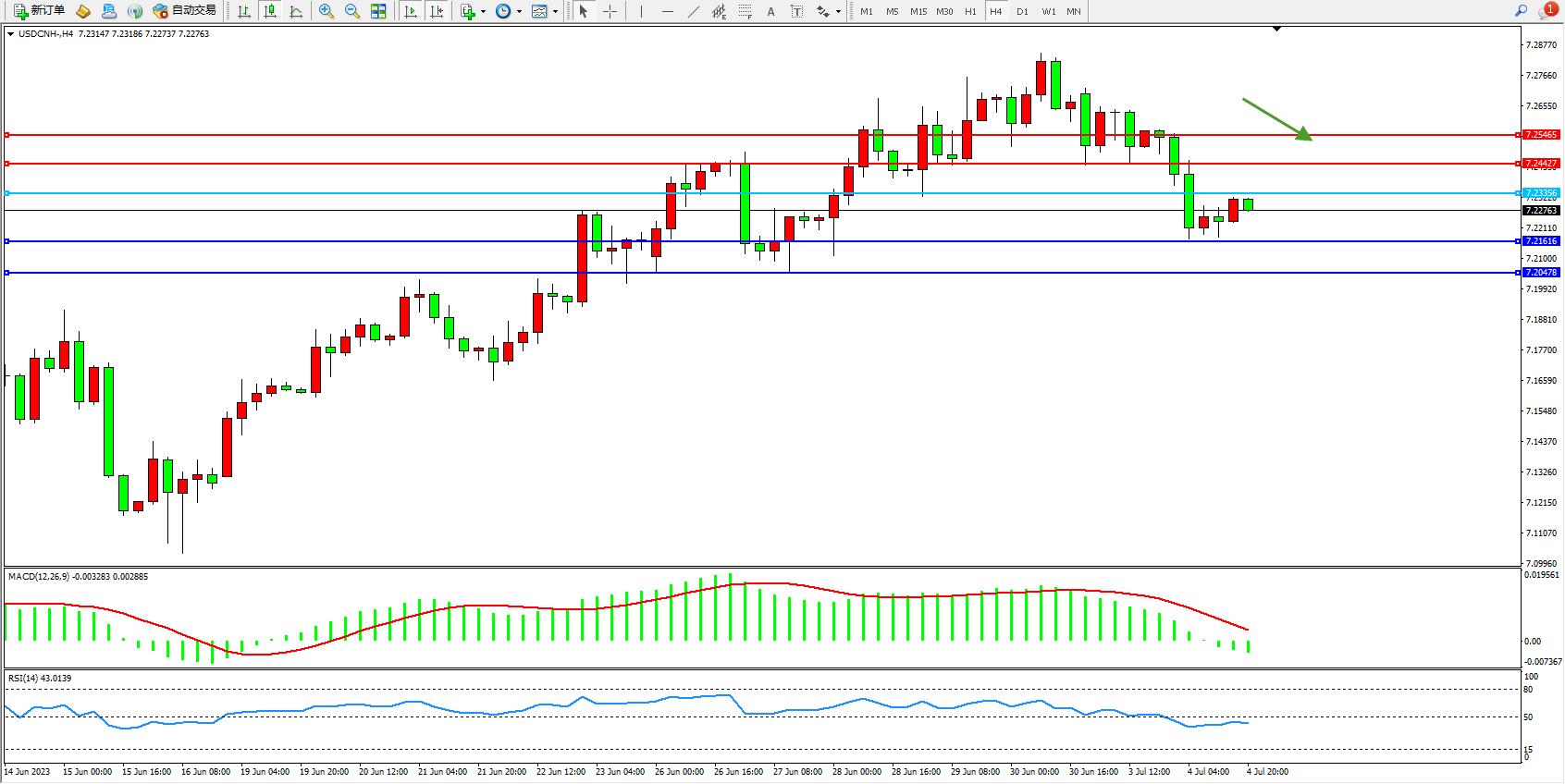 交易策略:7.23356下方看跌,目标7.21616  7.20478