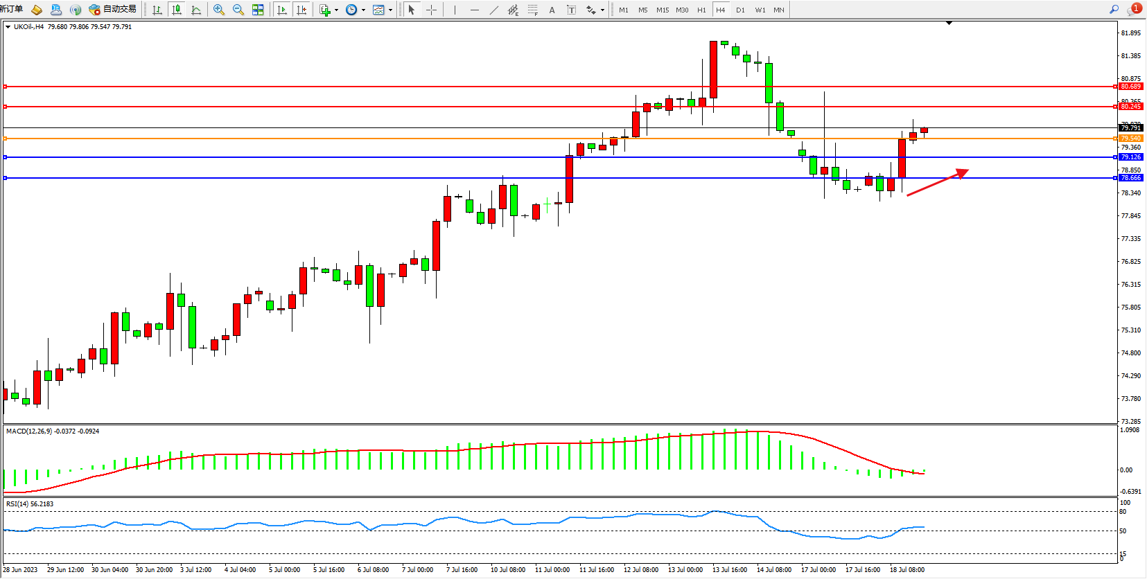 布油UKOil——4小时K线图显示: