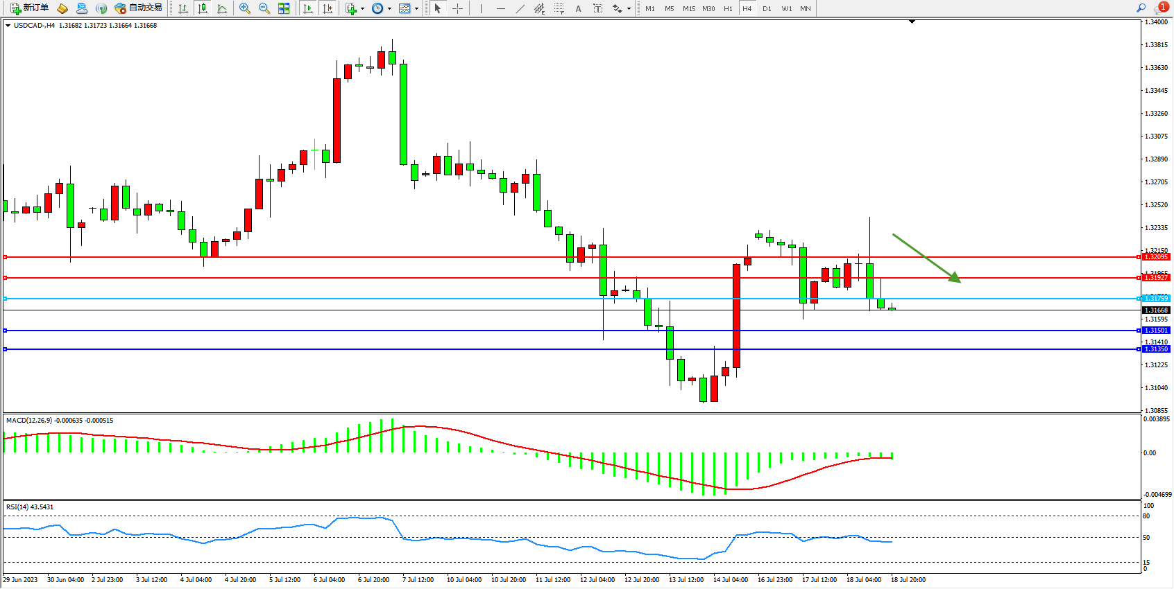 美元加元USDCAD——4小时K线图显示: