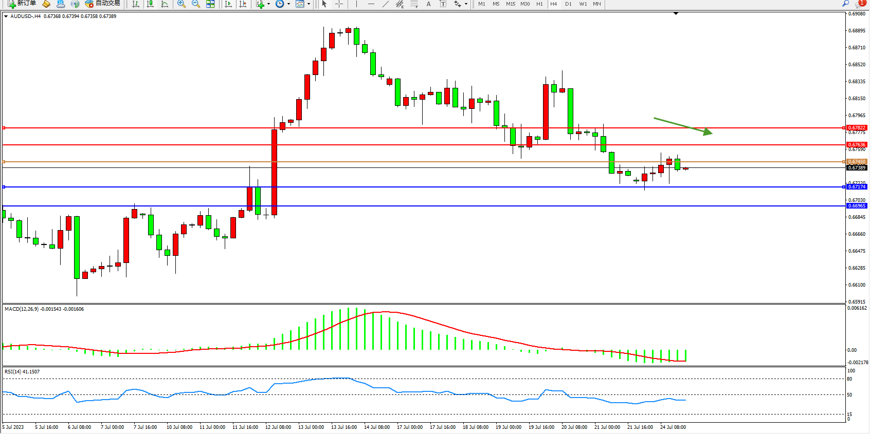 交易策略:0.67450下方看跌,目标0.67174 0.66965