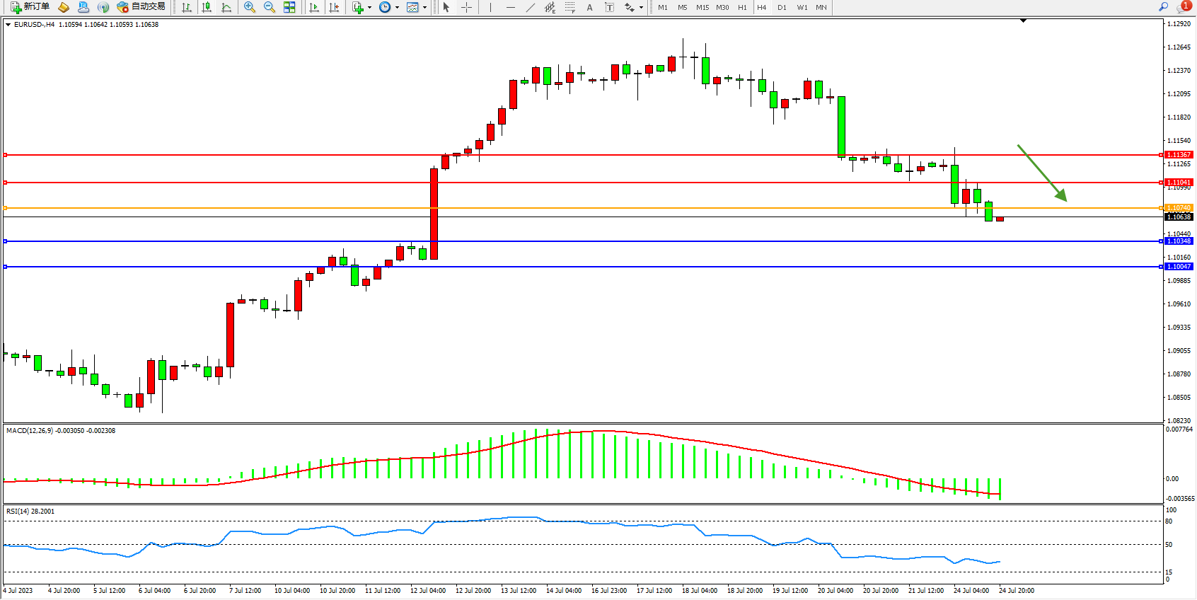 欧元兑美元维持1.10638附近震荡,在外界普遍预期的本周加息25个基点之后,不排除欧洲央行在9月再次加息的可能性,但无论如何,欧洲央行都不希望9月被视为货币政策周期的转折点。