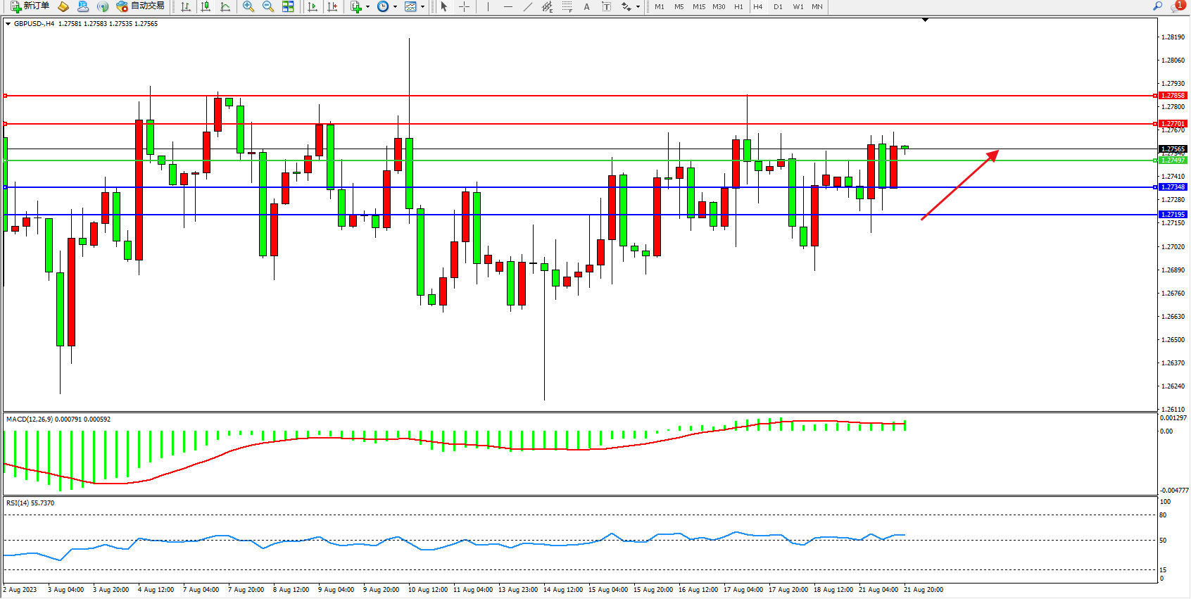 交易策略:1.27497上方看涨,目标1.27701  1.27858