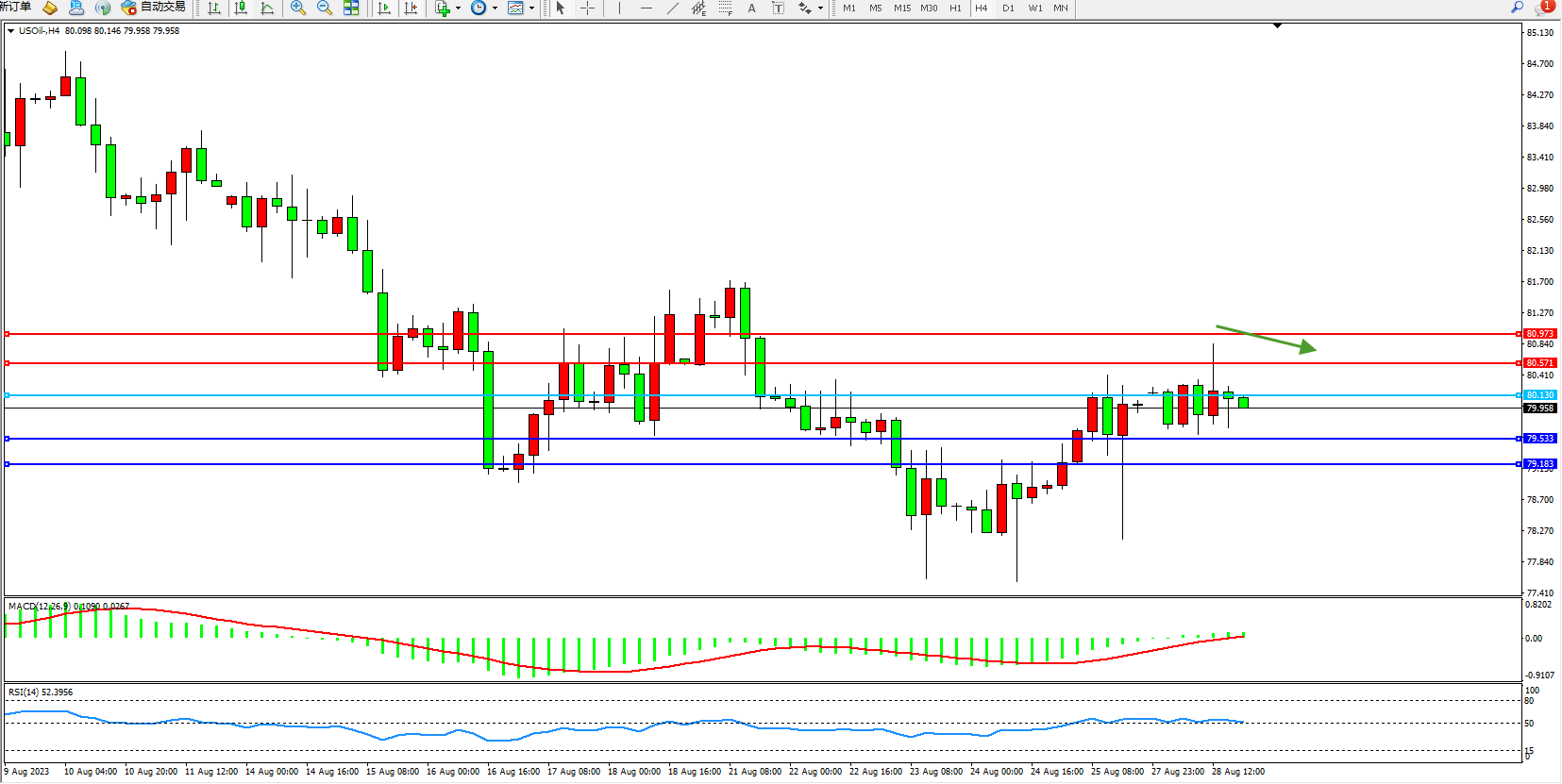 原油维持79.958附近震荡,近期 WTI 原油市场的反弹可能会超过杰罗姆·鲍威尔效应。沙特阿拉伯政府的减产决定和供应不确定性塑造了形势。