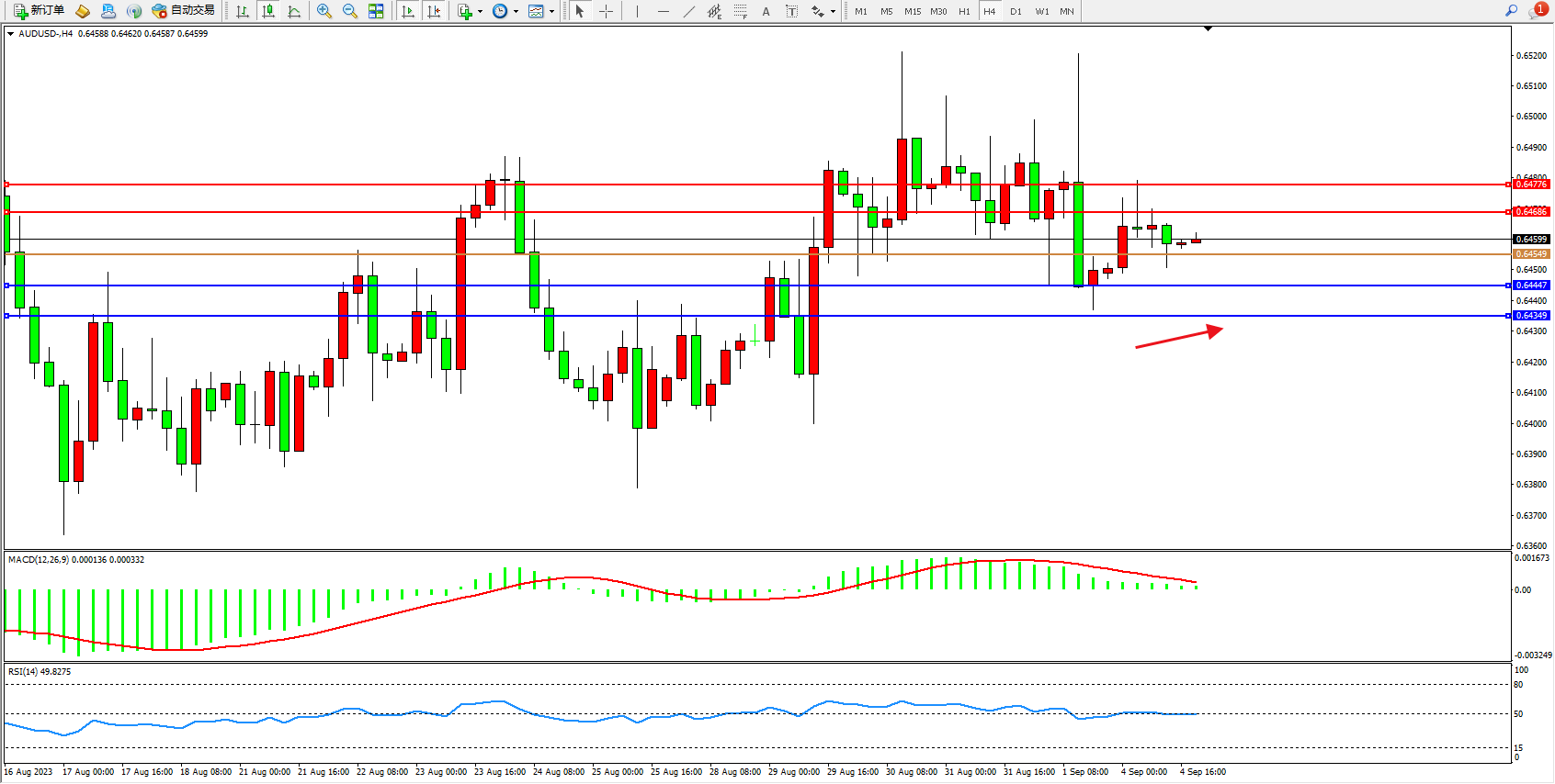 交易策略:0.64549上方看涨,目标0.64686  0.64776