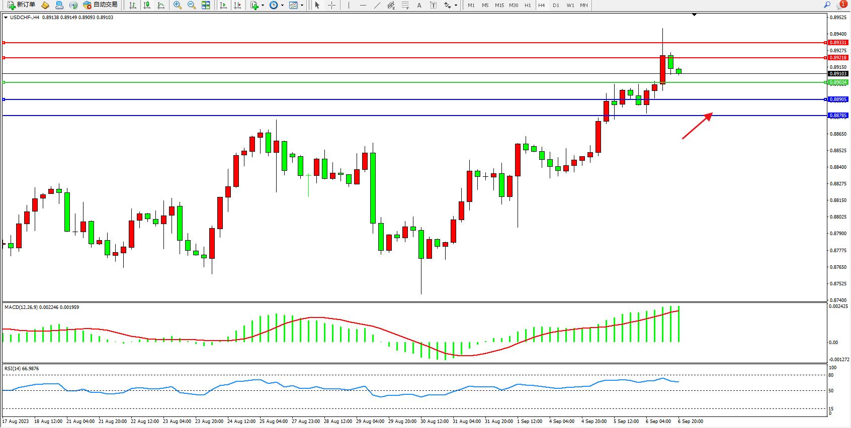 USDCHF:高位上扬 USDCHF  XAUUSD