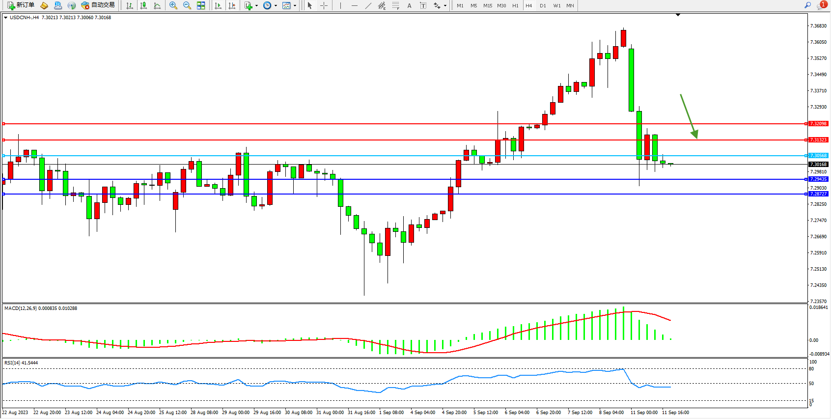 交易策略:7.30568下方看跌,目标7.29435 7.28727