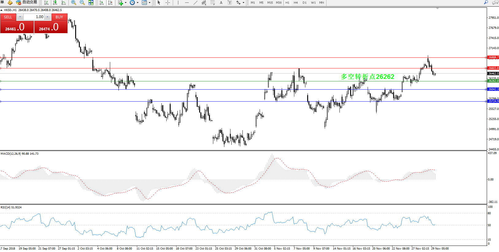 备选策略:受26262附近支撑,维持该位震荡做多。