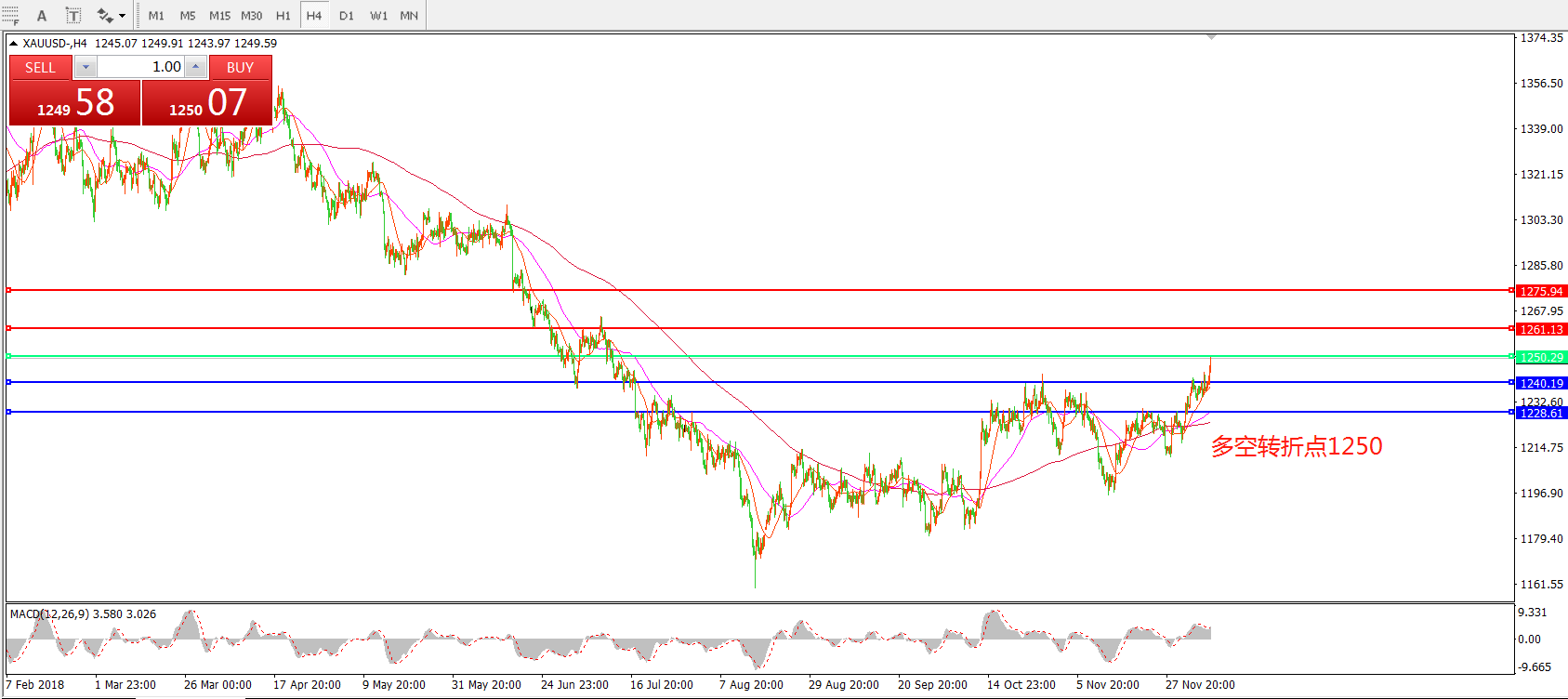 在避险情绪与美元走弱的加持下,黄金周五大举反攻,至尾盘最高触及1250一线,持续升破了此前三个月的震荡区间。