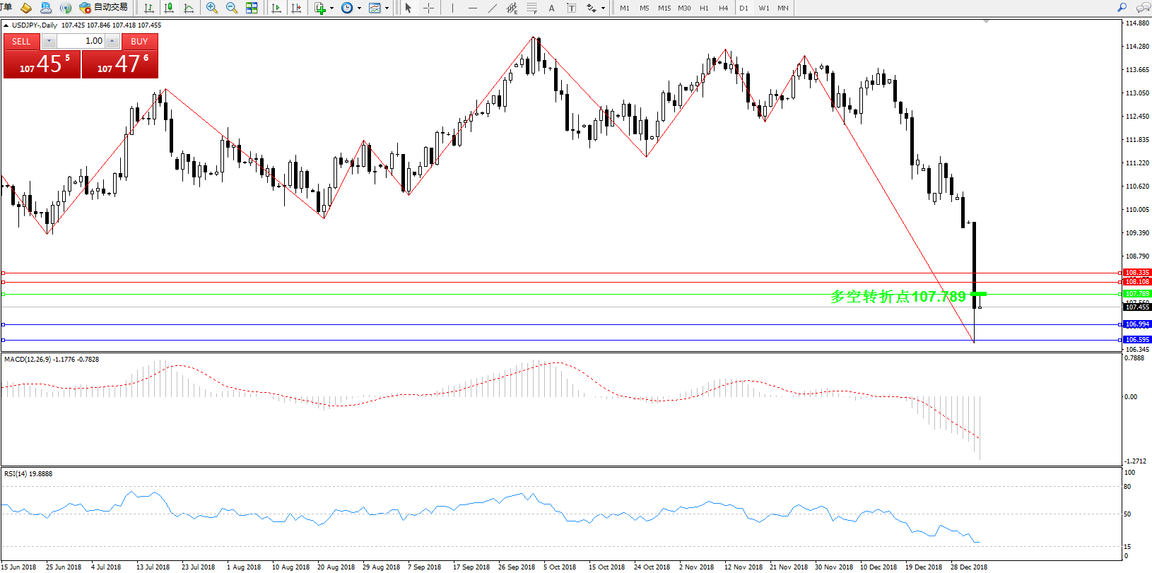 美元兑日元跌至八个月新低108.71,为2018年5月来未见水平,一度跌破109.00关键整数支撑位,避险情绪升温支撑日元买需,此外美债收益率的下滑也施压美元。美国10年期国债收益率也持续走低,触及11个月新低2.661%。极短线内,只要美国政府关门闹剧持续,避险情绪可能持续升温,从而支撑日元,需关注本周稍晚将公布的美国经济数据,包括ADP就业报告及非农就业报告等。