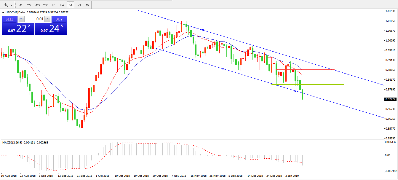 技术面简析: 均线延续死叉,MACD0轴下方运行动能放量,汇价打破下降通道下轨,空头力量正盛,有进一步走低态势