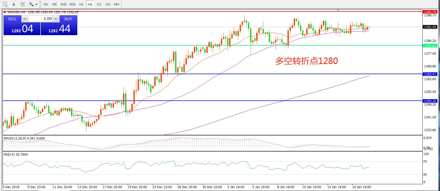 交易策略:在1280.00之上看涨,目标1300.00 1319.00