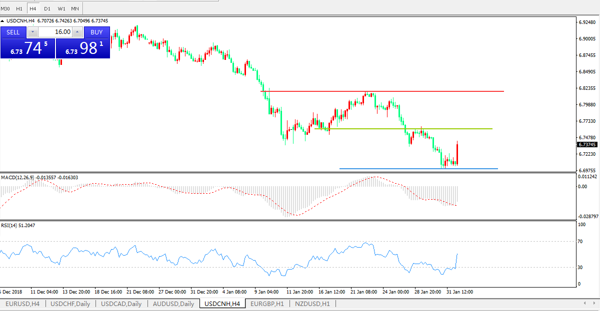 交易策略:在6.7650之下,看跌,目标价位为6.7240,然后为 6.7000 。