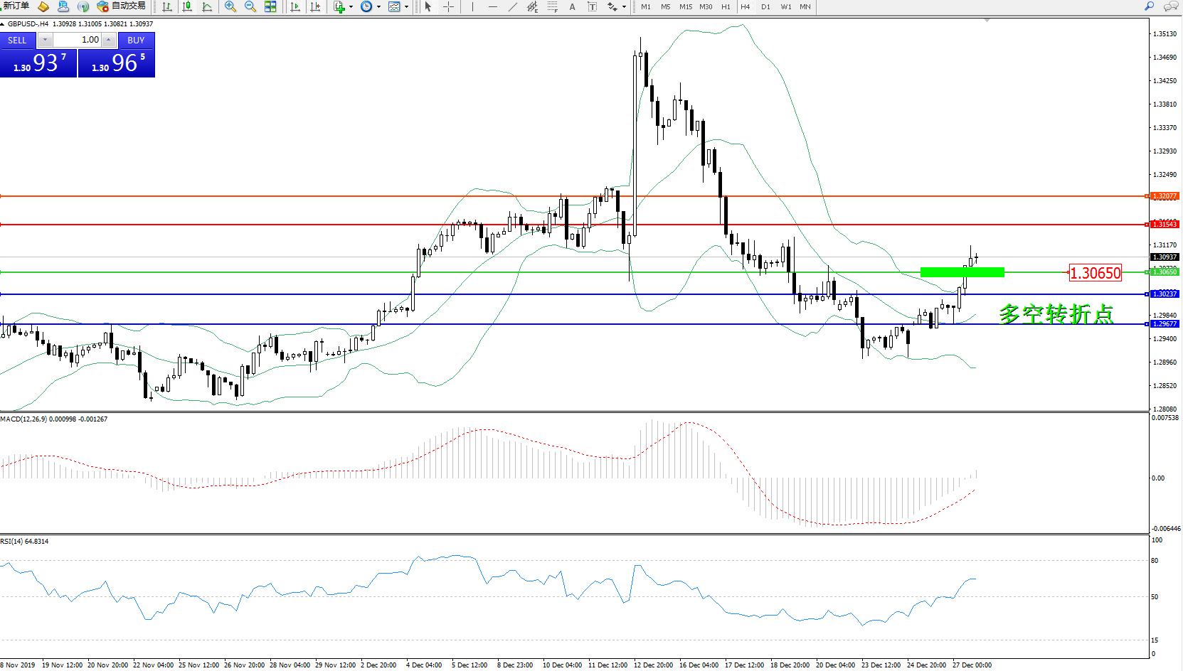 交易策略:1.30650上方看涨,目标1.31543、1.32077