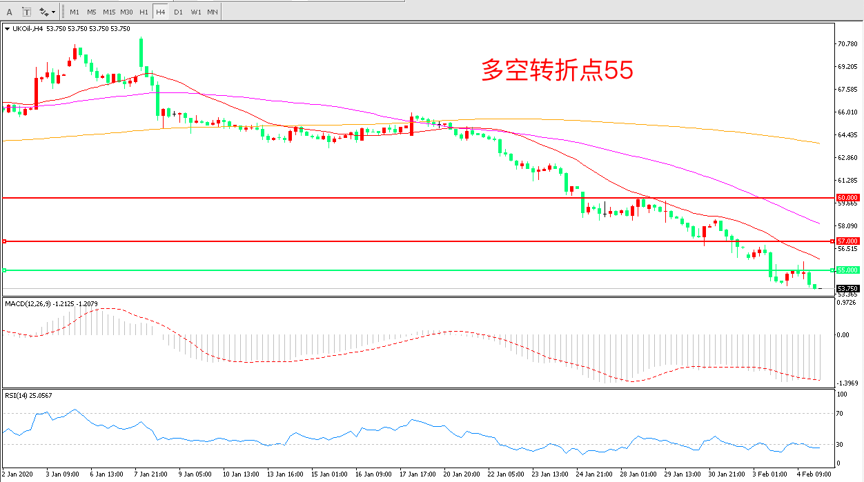 交易策略:在55.00 之下看跌,目标52.00 49.00