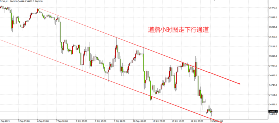 (道指日线图、小时图均表现弱势)