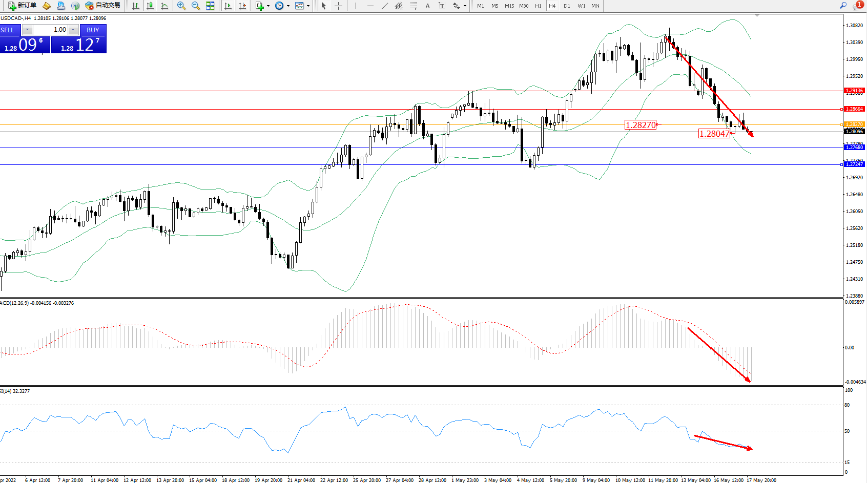 交易策略:1.28270下方看跌,目标1.27680、1.27247