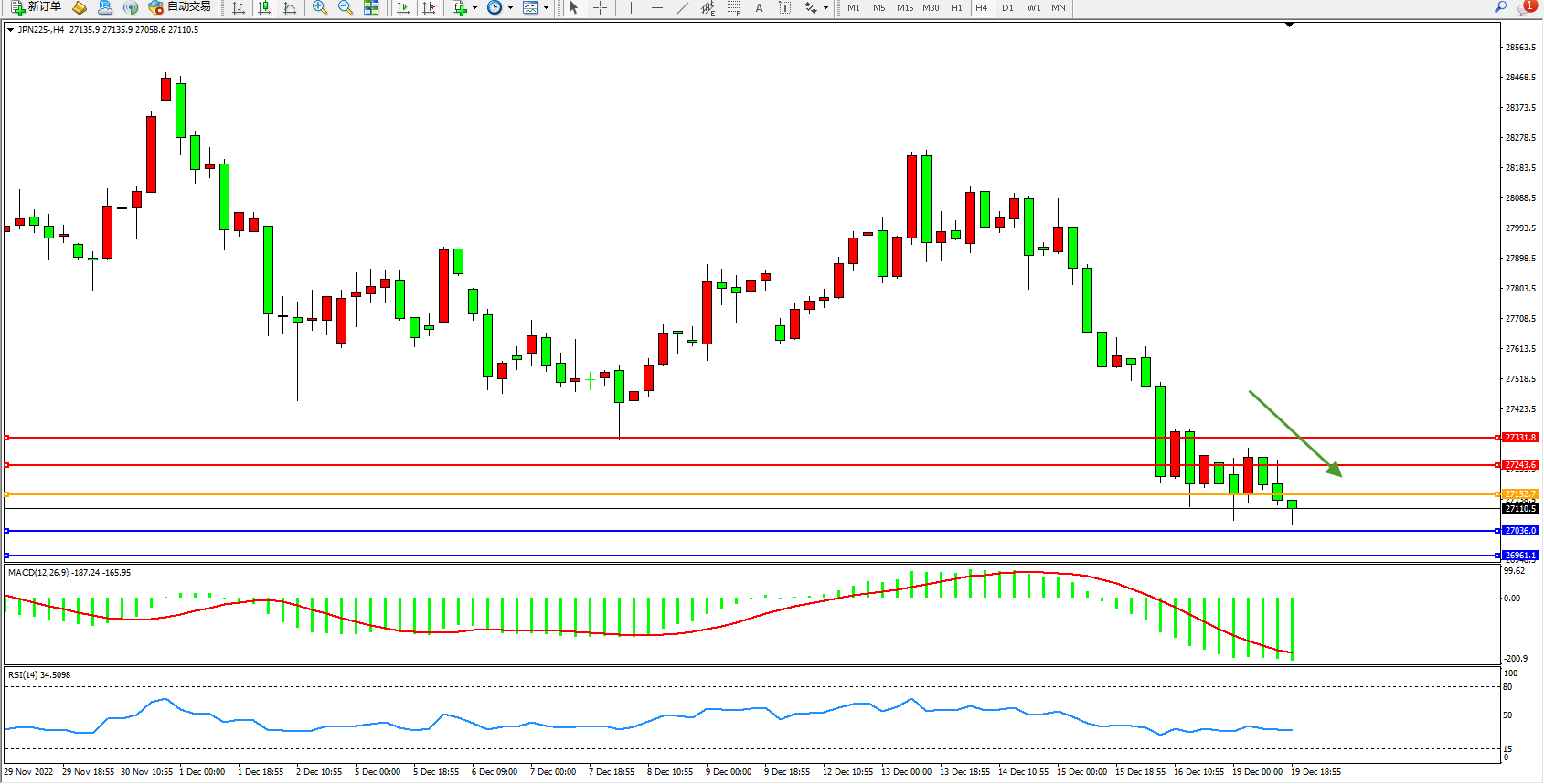 日经225指数12月19日(周一)收盘下跌292.62点,跌幅1.06%,报27234.50点。对于首相岸田文雄宣布的为强化防卫力而增税,64.9%的受访者回答“不支持”,30.0%的人表示“支持”。围绕伴随防卫费增额而增税,认为岸田的说明“不充分”的达87.1%,大幅超过认为“充分”的7.2%。岸田内阁支持率持续低迷,仅为33.1%,与创内阁起步以来新低的上次调查(11月下旬)相同。