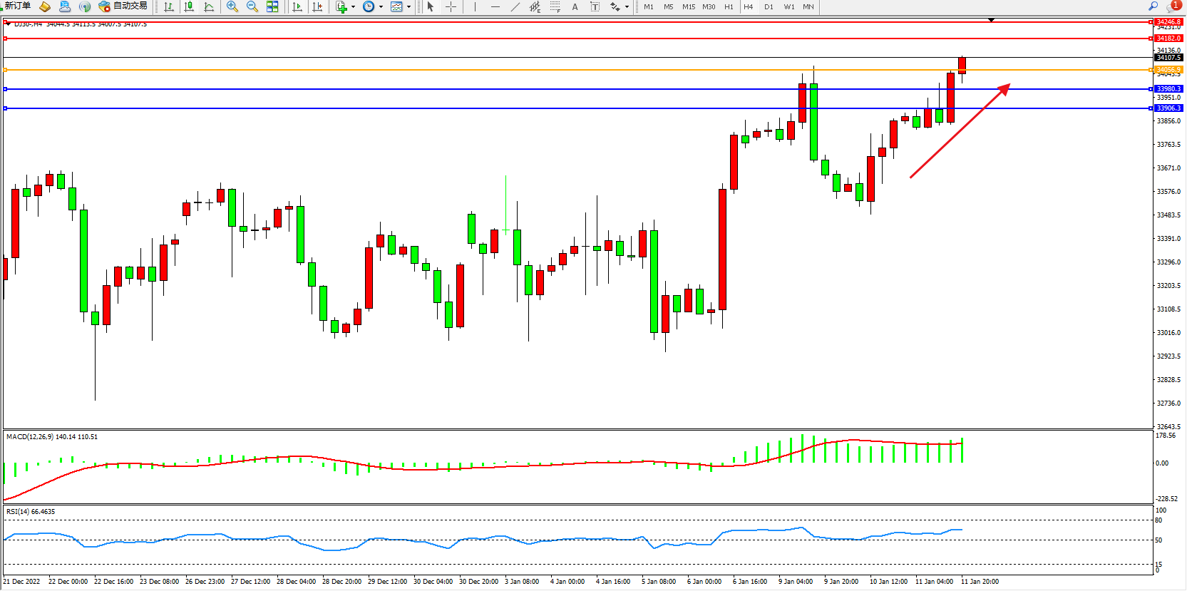 道琼斯指数1月11日(周三)收盘上涨268.15点,涨幅0.80%,报33972.25点;交易员预计美国12月CPI数据料证实通胀压力进一步回落。美联储官员普遍认为,一旦完成加息,将需要较长时间保持高利率以压低通胀。如果没有价格稳定,经济就无法发挥其全部潜力。